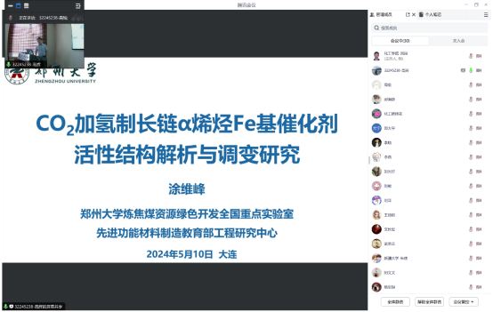 李正龙教授和涂维峰教授分别做了《低碳资源高值转化利用研究进展》、《CO2加氢制长链α烯烃Fe基催化剂活性结构解析与调变研究》的学术报告。
