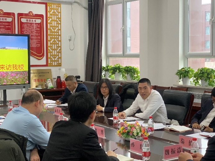 中建新疆安装工程有限公司总工程师朱国锋发言,表示希望双方就人才培养、项目申报、联合研究、成果转化、平台共建等方面进行深入交流。建立合作关系,突出双方优势,学校内的成果可依托企业推广转化,企业遇到的难题可委托学校研究攻关。并提出可成立校外实训基地,促进人才产-学-研一体化培养。双方都表示愿意进一步加强合作,共同推进相关领域的技术进步和人才培养。