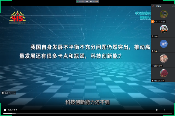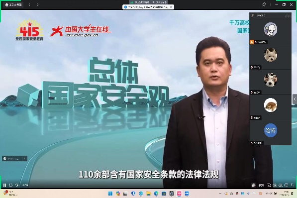 2024年4月15日是我国第九个全民国家安全教育日。为深入贯彻总体国家安全观,让全院师生了解更多的国家安全知识,增强国家安全意识,自觉维护国家安全,365英国上市公司于2024年4月14日15:00组织全体师生观看《千万高校员工同上一堂国家安全教育课》。